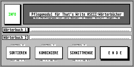 WSORTJB ist für Anwender interessant, die mit That's Write mehrere Zusatzwörterbücher benutzen und diese gelegentlich pflegen und anders organisieren wollen. | |